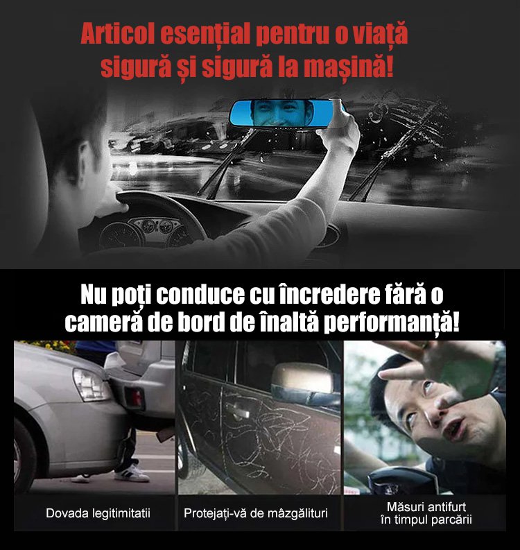 Recorder auto HD WiFi cu trei înregistrări